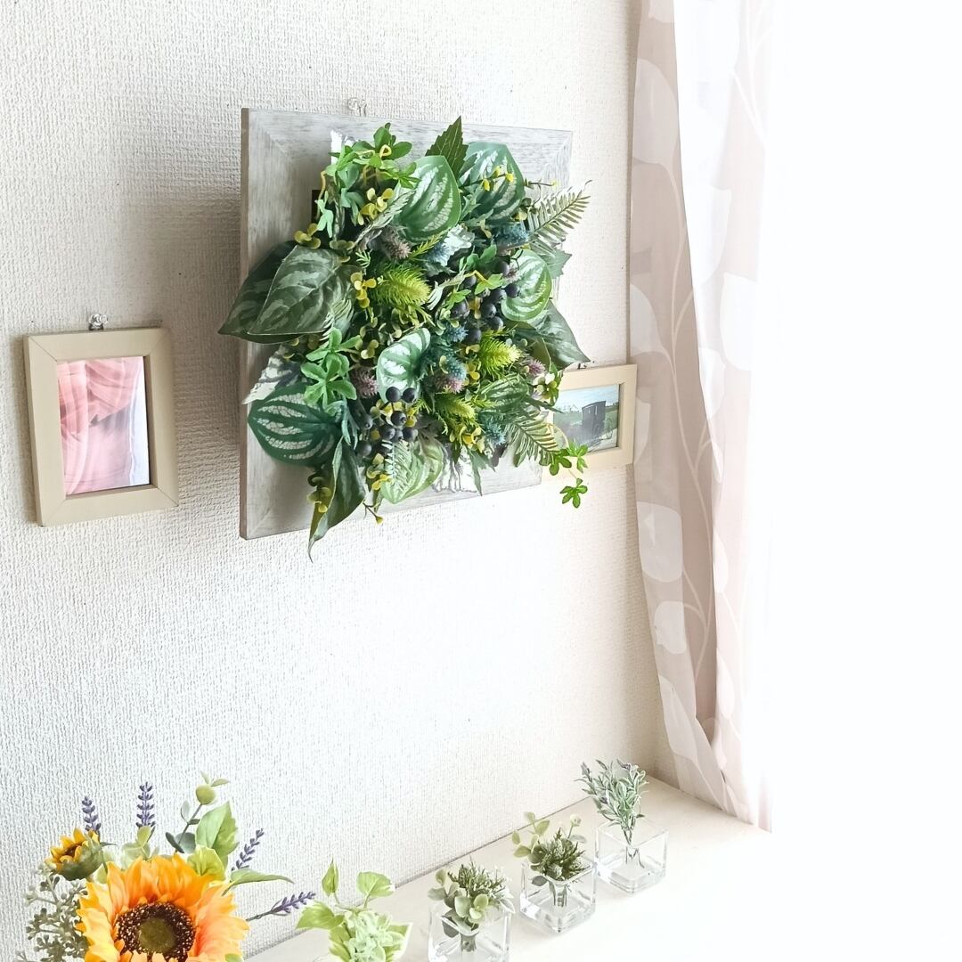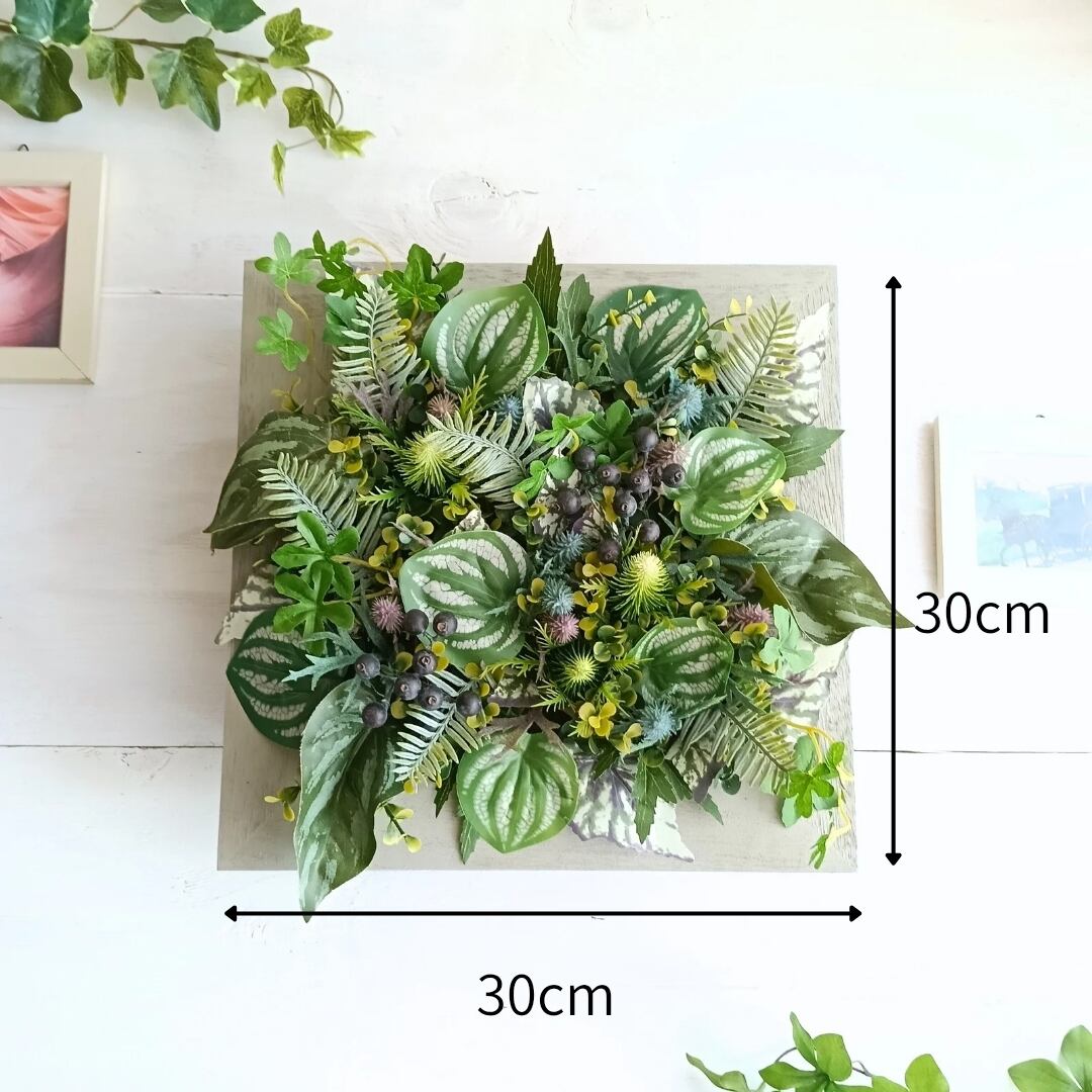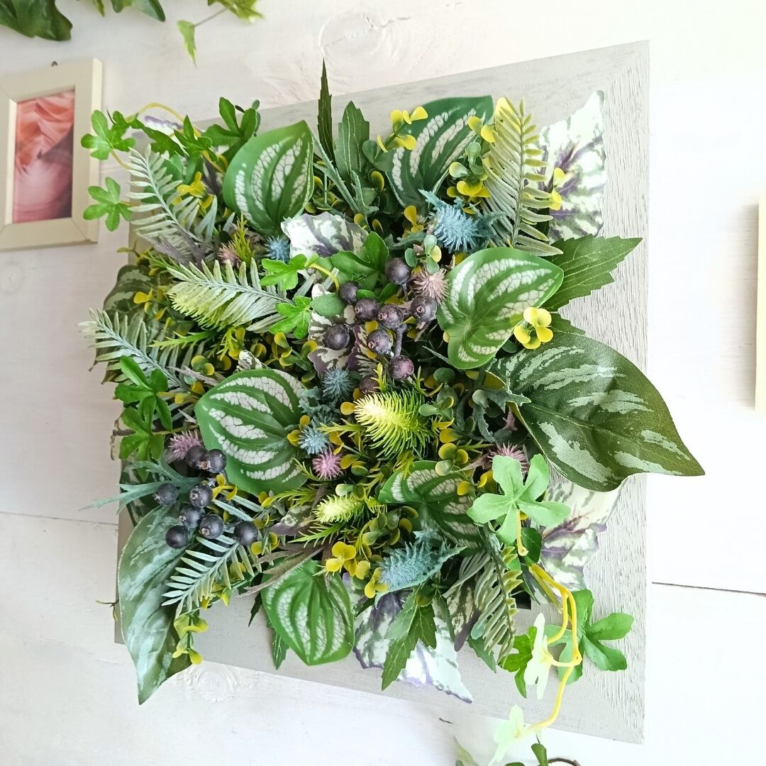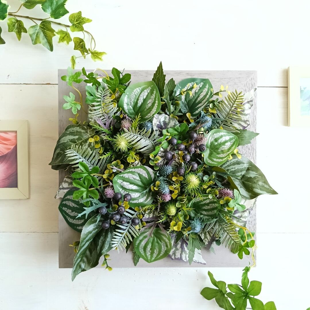 【オフィス・店舗に】スクエアの壁掛けインテリアグリーン 正方形 ウォールグリーン 壁掛けインテリア フェイクグリーン 人工植物 観葉植物インテリア 壁面緑化 空間装飾 ボタニカルライフ